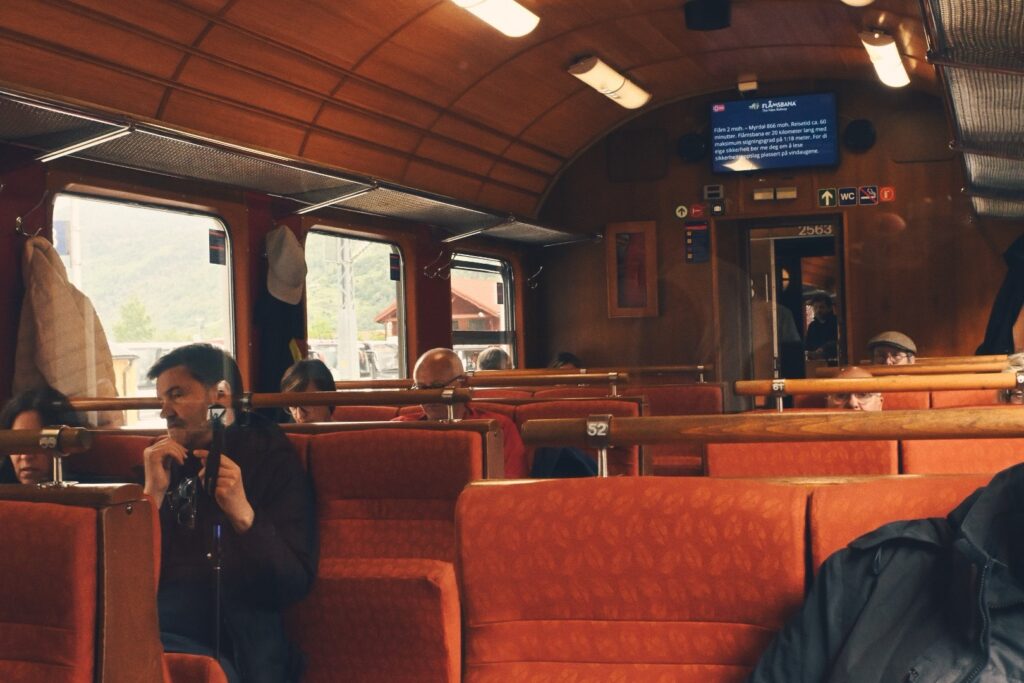 そして休憩後はナットシェルのもう一つのハイライト、フロム鉄道だ。フロム鉄道は約20kmの距離で標高差約864mを、約1時間かけて下り、雄大なフィヨルドと滝の景色を楽しめる「世界で最も美しい鉄道の旅」の一つとして知られている山岳鉄道だ。