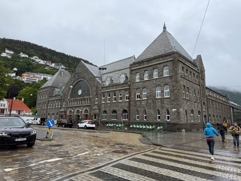 15分も歩けば、美しい外観のベルゲン駅に到着。駅はフィヨルドを目指す旅人で混雑している。