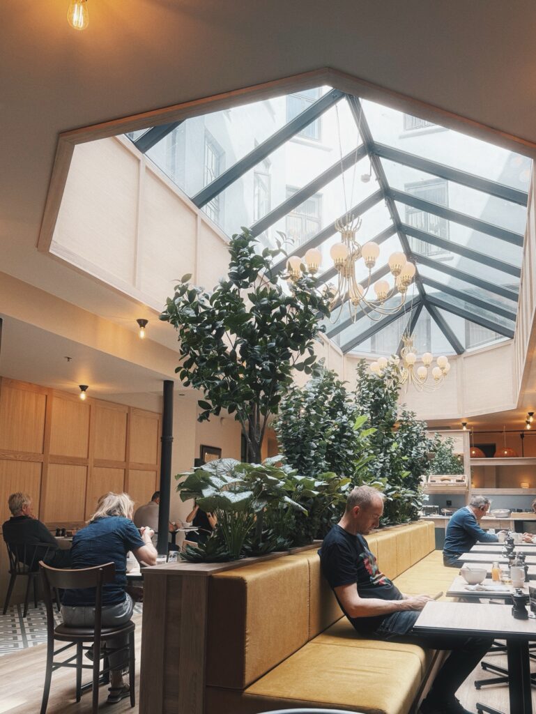 一般的なブッフェといったところ。さすがノルウェー、サーモンはもちろんあるのでサーモン好きには嬉しい。全体的にはビジネス利用も多いせいか、やや忙しない印象があるが、ガラス張りの天井から日の光が降り注ぐので、空間としてはとても気持ちが良い。