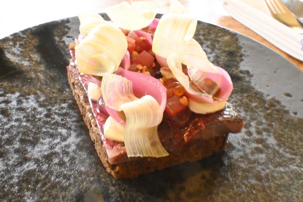 最初に書いた通り、デンマークの国民食「スモーブロー」をモダンに昇華させた専門店。ミシュランのビブグルマンに選出されたこともあり、カジュアルながら質の高い味わいが楽しめる。伝統的な黒パンの上に、ニシンのマリネやサーモン、季節の野菜をアートのように盛り付けた一皿は必見。地元客から観光客まで幅広く人気で、ランチタイムは早めの予約がおすすめだ。クラフトビールやナチュラルワインとの相性も抜群。