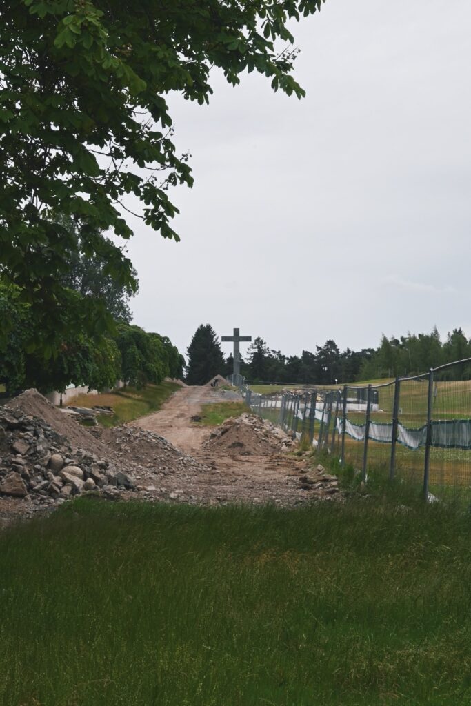 確かに遠くに十字架が見える。しかし、周囲は盛り上がった土とそれを囲むように張り巡らされたフェンスがあった。