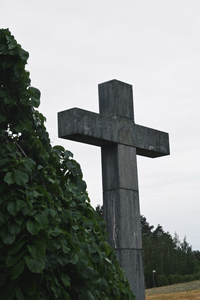 正面玄関から入ってまっすぐ進むと、森の墓地の象徴的な礼拝堂の大きな十字架が見えるはずだった。