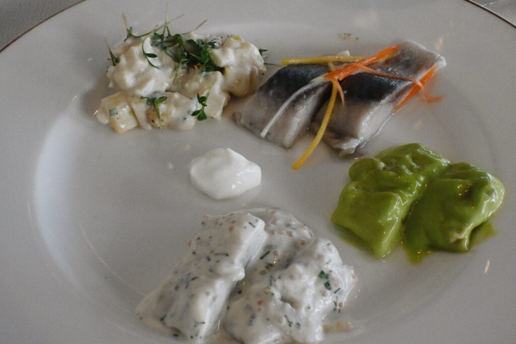 一番印象的なのは、ニシンの酢漬けだ。これだけでたくさん種類があり、面白い。これはハマる人は相当ハマるんじゃないだろうか。私もこれが好みでお酒も進むのでついつい食べ過ぎて後半が苦しくなってしまった。